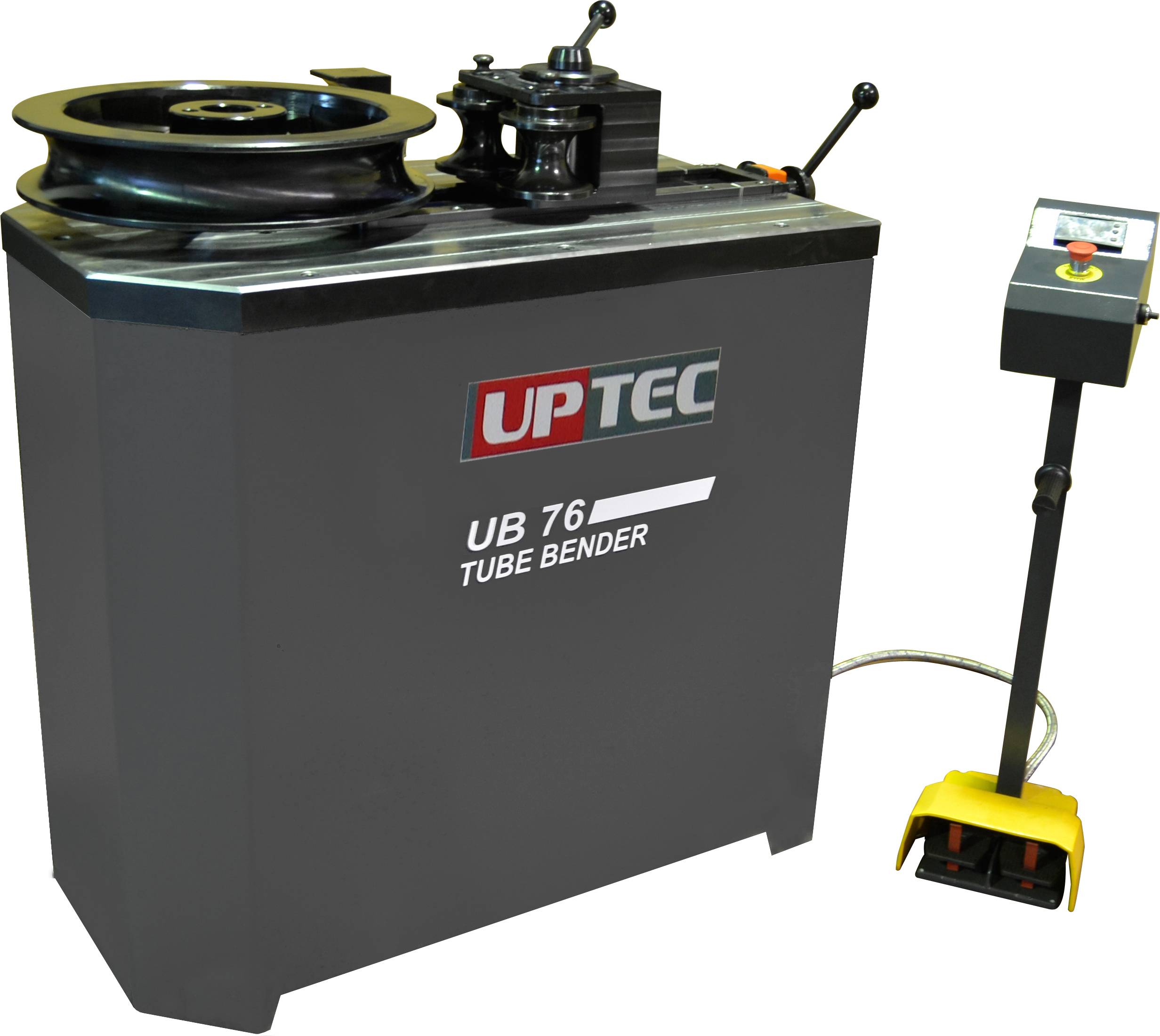 UPTEC non-mandrel tube benders are ideal for producing quality bends in pipe, tube, squares, solids and other profiles. With a quick change tooling system and digital display brings a fast and oprator friendly usage. For hands free operation, it comes in standard with a foot pedal. NC control and special toolings are available also on request bases as a option.